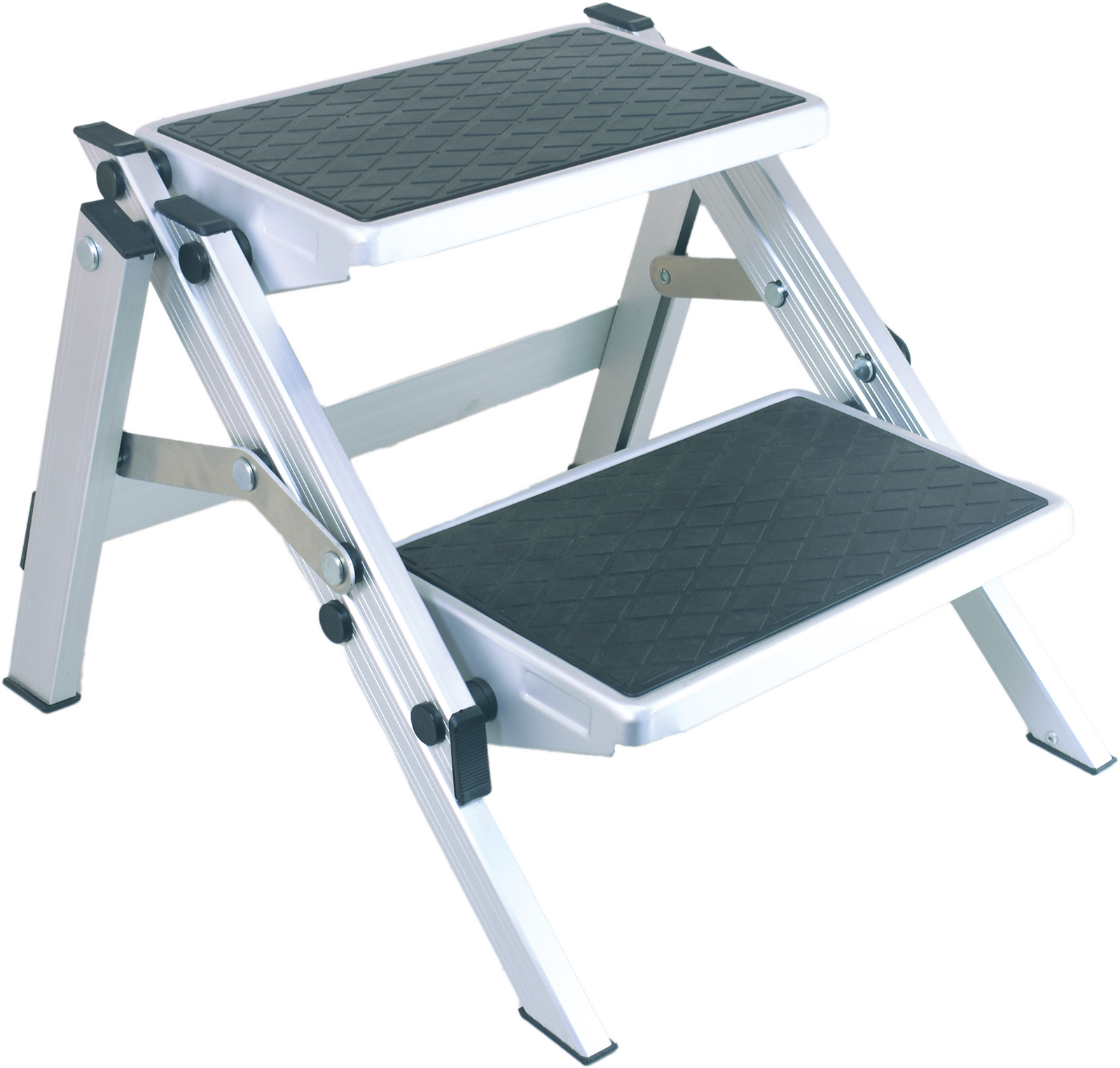 Featuring a secure locking mechanism, this folding step firmly locks into place when in use and unlocks with minimal effort when you're ready to stow it away.